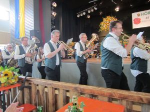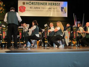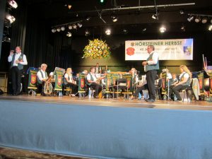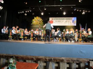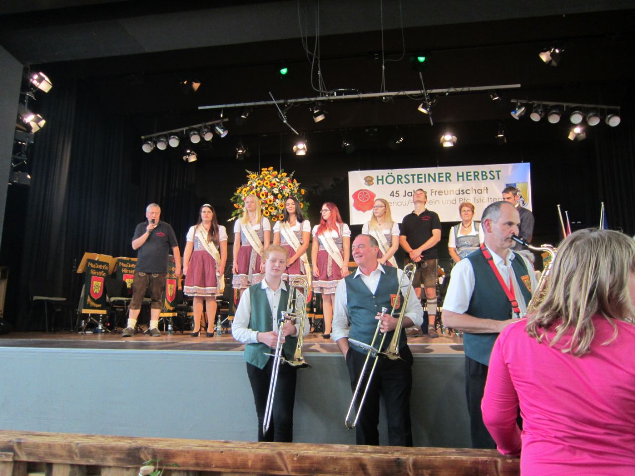 Der Musikverein hat auch dieses Jahr wieder für die musikalische Unterhaltung am Weinfest „Hörsteiner Herbst“ gesorgt und die Herbstmädchen beim Einzug auf die Bühne begleitet.