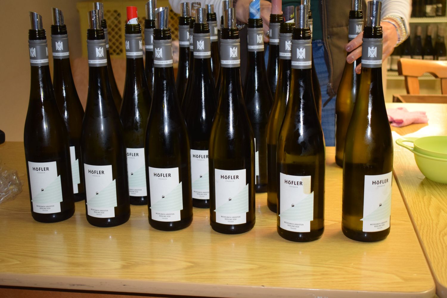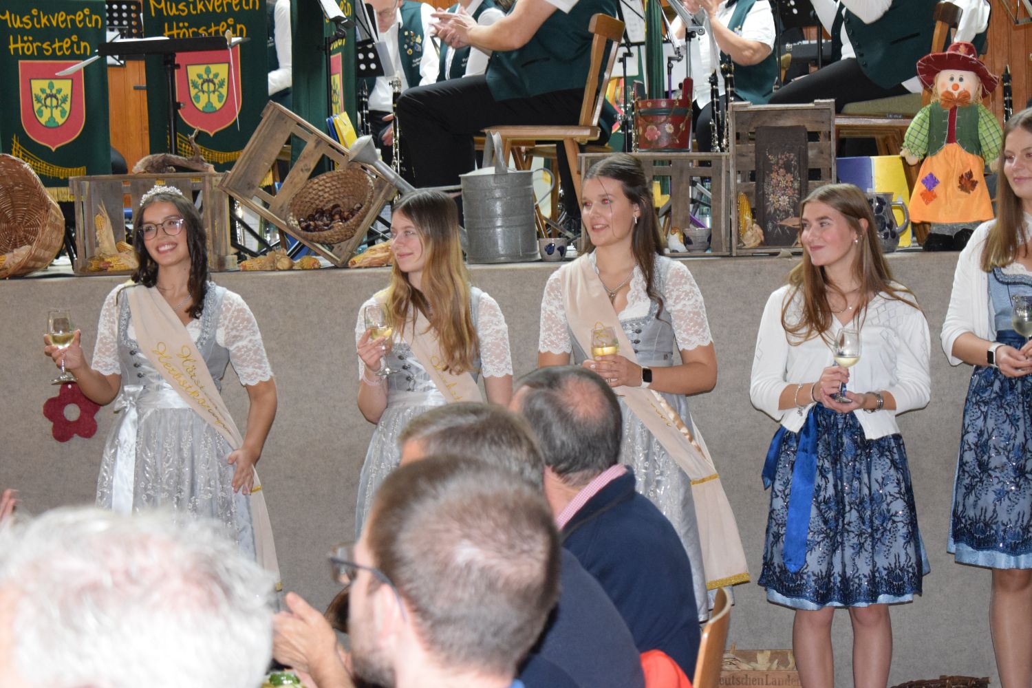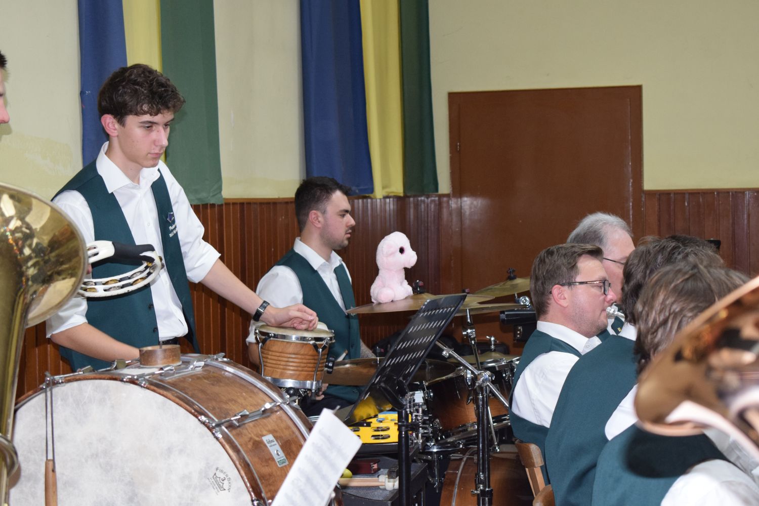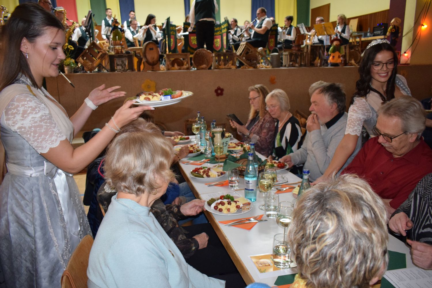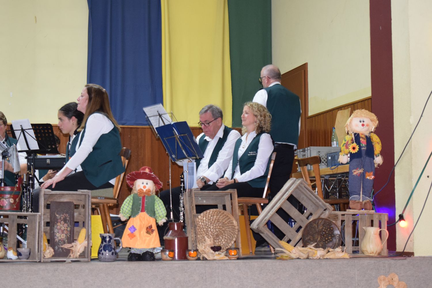 Deutlich mehr als die zugelassenen 168 Plätze hätte der Musikverein Hörstein bei seiner Weinprobe mit Musik in diesem Jahr vergeben können. Die Veranstaltung mit der einzigartigen Kombination aus Weinvorstellung, Weinverkostung, Witz und Musik ist längst eine Institution in Hörstein und hat sich weit über die Ortsgrenzen hinaus herumgesprochen. Erneut gab es 8 Weine zu verkosten, drei aus Hörstein, zwei aus Wasserlos, einen aus Michelbach, eine vom staatlichen Hofkeller Würzburg und einen traditionell vom befreundeten Rheingauer Weingut, das der Veranstaltung wie manch lokaler Winzer seit Anbeginn 2008 die Treue hält. Beschwingt musizierte die Kapelle zum Vesperteller und Schoppenwein, ehe die eigentliche Weinprobe begann. Neben den bekannten und bewährten Rebsorten wie Müller-Thurgau und Riesling, standen auch etwas seltener kredenzte Weine wie Scheurebe und Schwarzriesling auf der Agenda, dazu ein „Mystique Blanc“ der örtlichen Winzergenossen. Die meisten Weine wurden von den Winzern selbst oder Vertreterinnen vorgestellt, ansonsten von Moderator Thomas Heilos, der wie er verriet, durch diese „Aufgabe“ erst in den letzten Jahren seine Liebe zu deutschen Weinen entdeckt hat. Unverzichtbar für die Veranstaltung war erneut Rainer Witthaut: Der Mann für die Vorstellung der Musikstücke, Anekdoten ganz knapp oberhalb der Gürtellinie und Trinksprüche schaffte es erneut, auch bei steigender Ausgelassenheit und Redefreude im Publikum immer wieder für die notwendige Aufmerksamkeit zu sorgen.