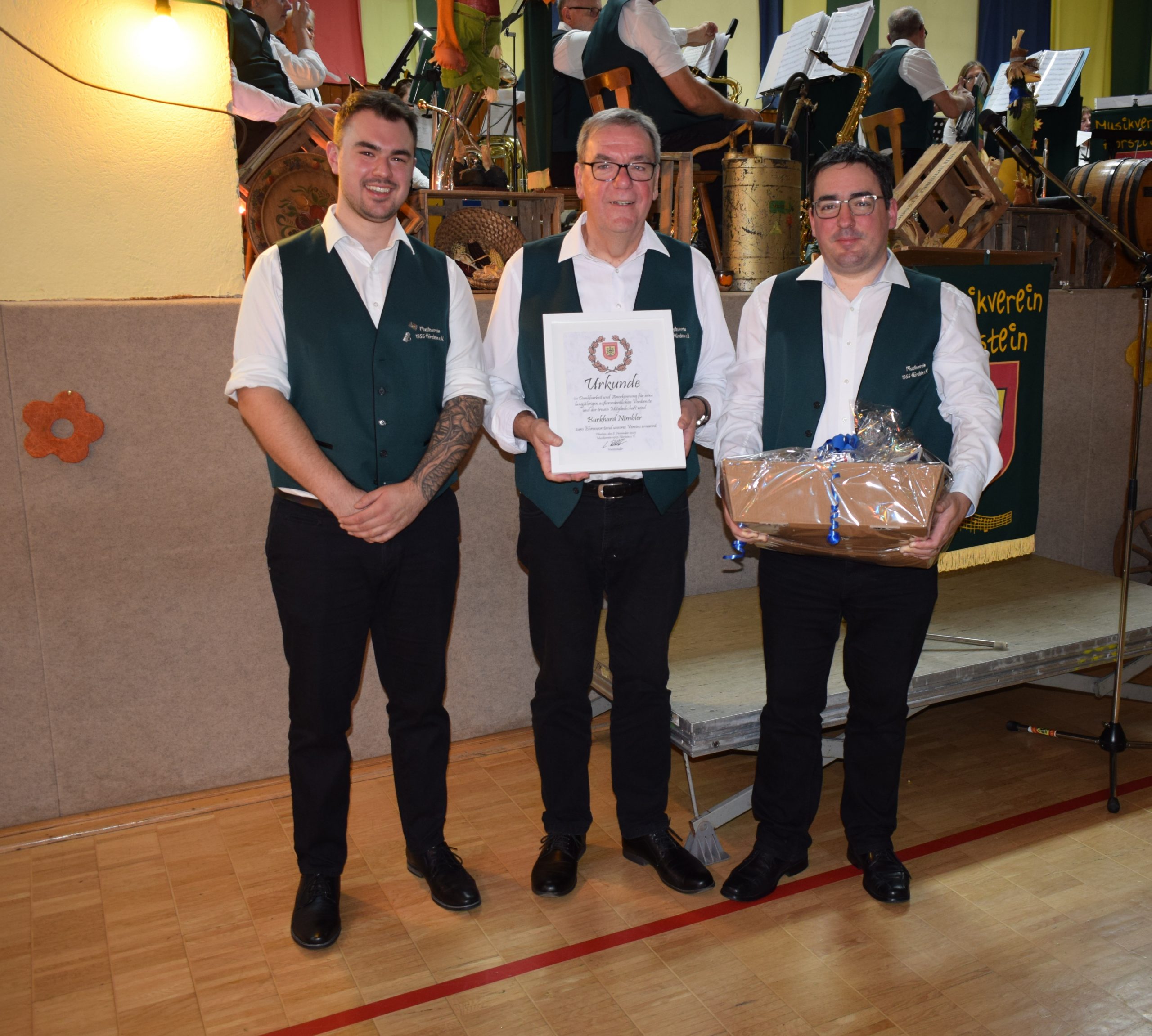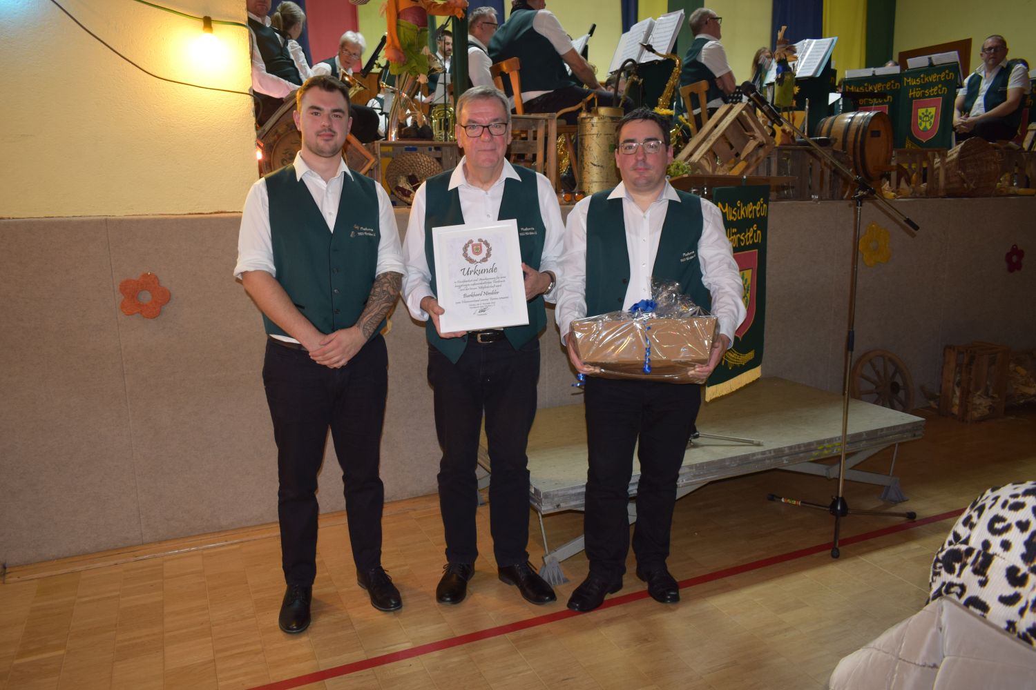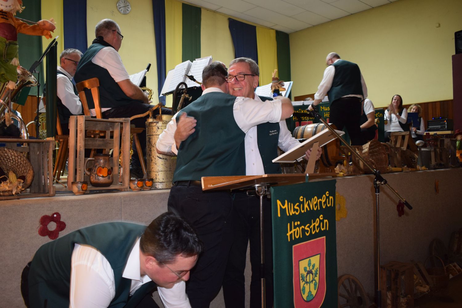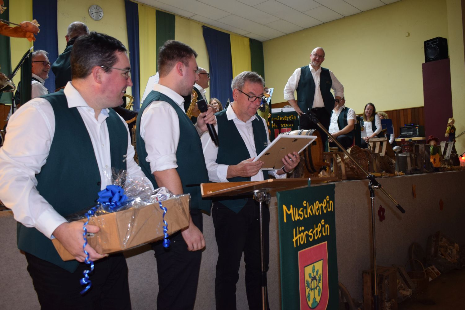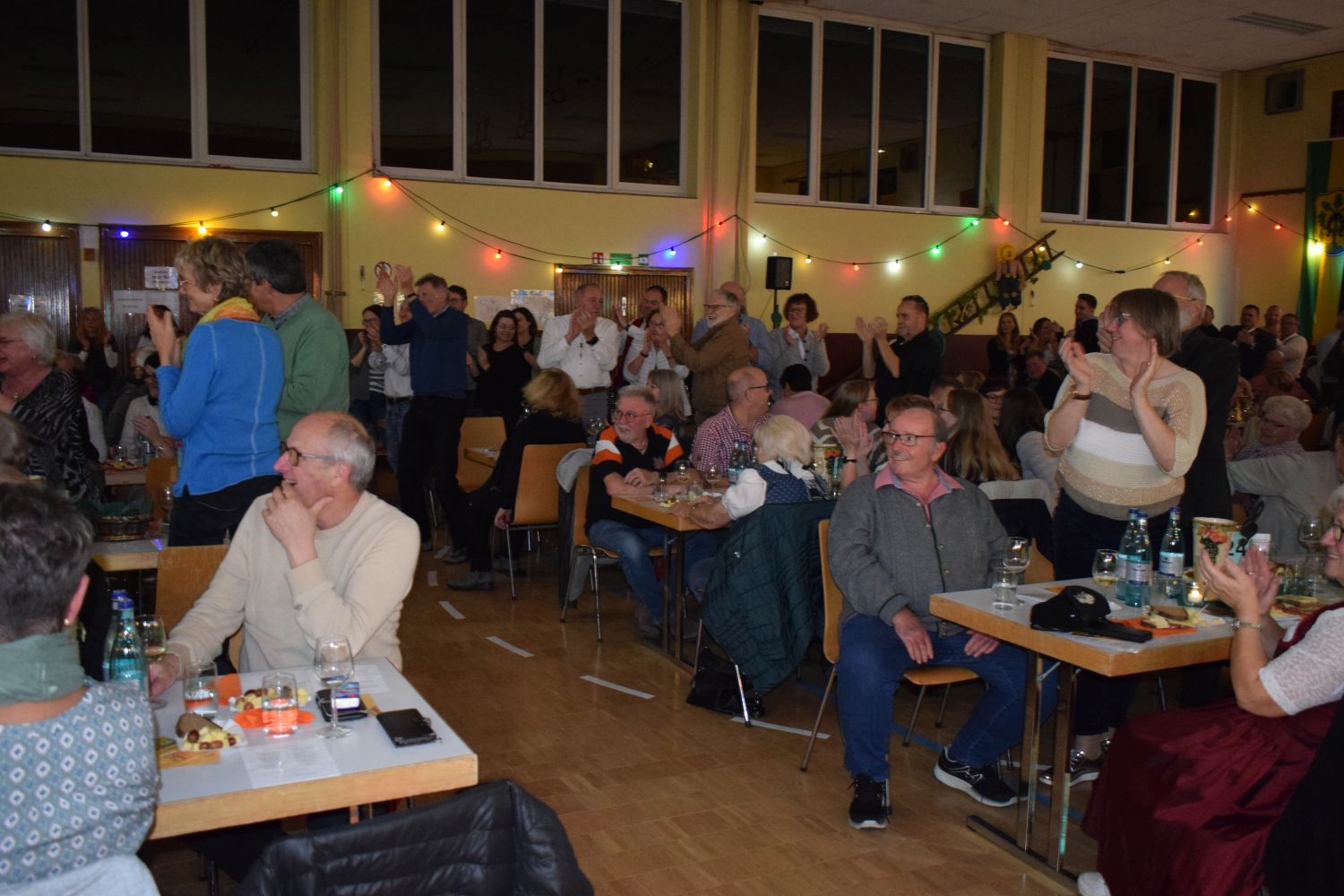 Ein Highlight gab es bereits im ersten Teil der Weinprobe: Zum Zwecke der Geheimhaltung im internen offiziellen Programmablauf „getarnt“, wurde „das Gesicht des MV Hörstein“, Burkhard Nimbler, unter dem Programmpunkt „Sonderverlosung“ zum Ehrenvorstand ernannt. Die Überraschung gelang, und die Ehrung ist zweifelsohne hochverdient: Sein Nachfolger Luis Bahlke trug die beeindruckende Liste an Ehrenämtern vor, die Burkhard neben 18 Jahren als 1. Vorsitzender von 1974 bis heute innehatte. Standing Ovations und langanhaltender Beifall waren der Lohn.