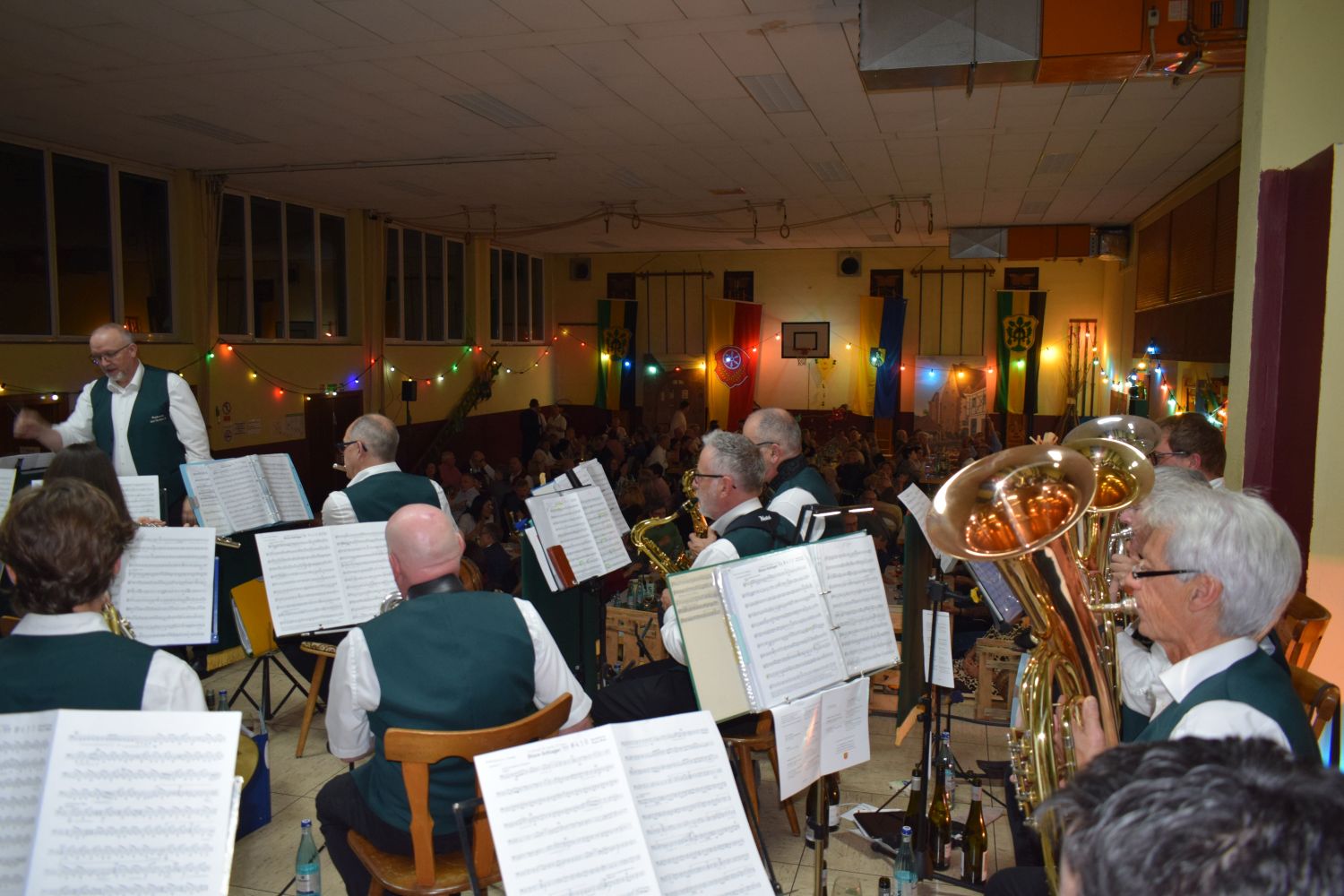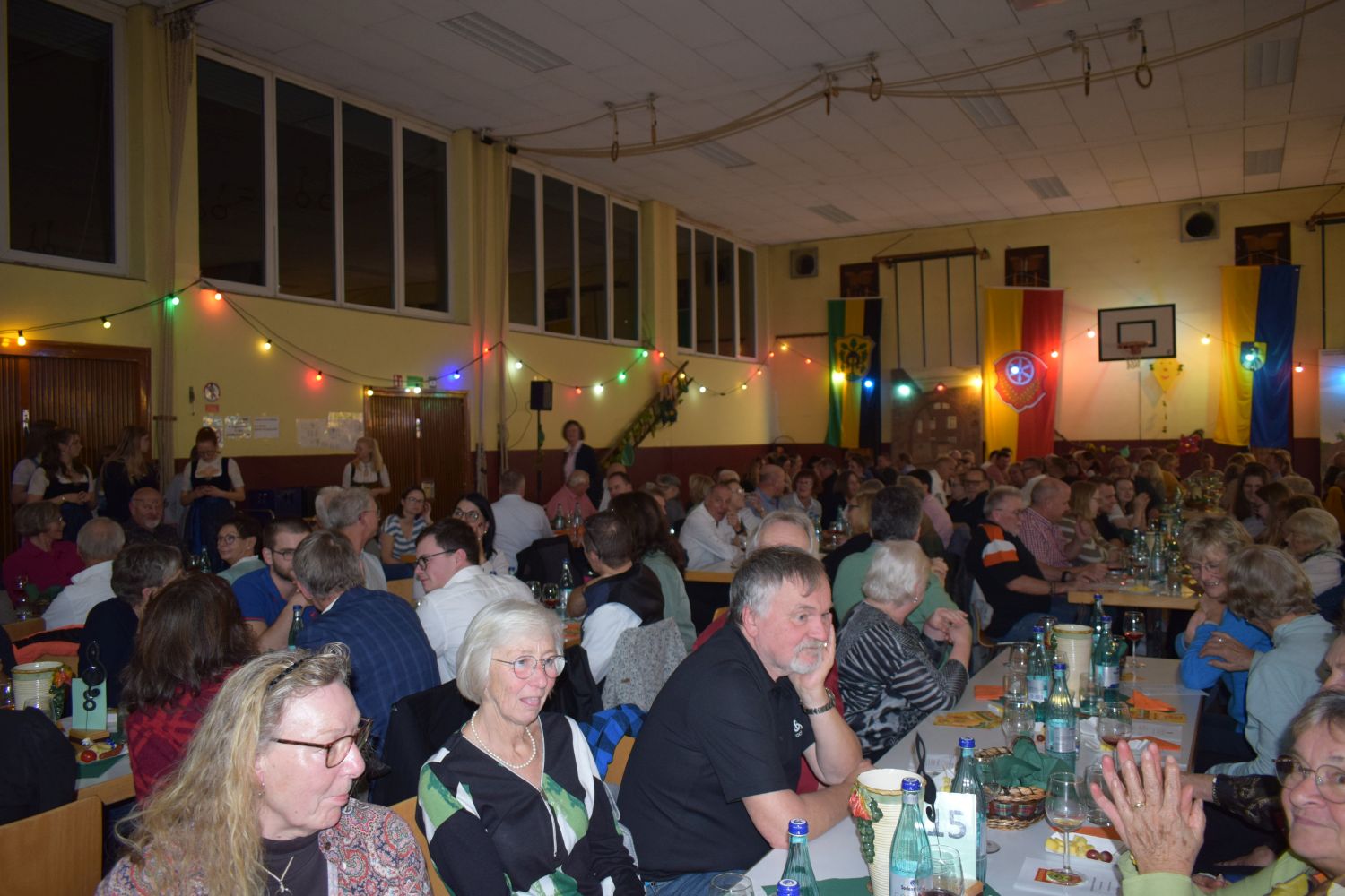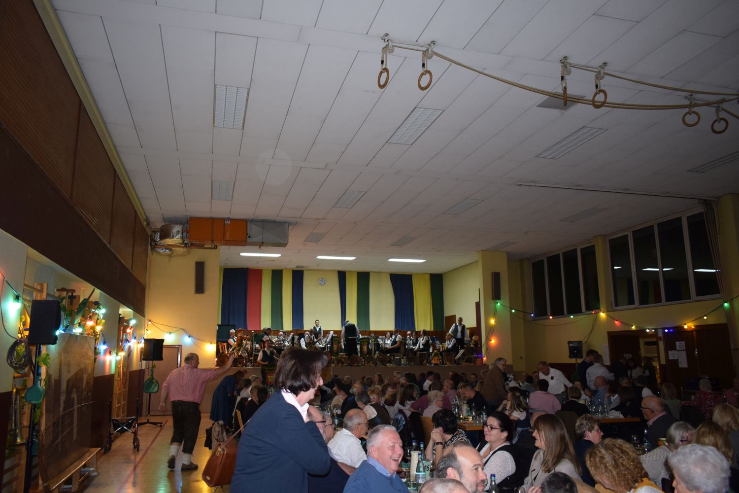 Auch nachdem der letzte Wein verkostet war, ging es in der Schulturnhalle Hörstein in bester Stimmung weiter. Erst weit nach 23:00 Uhr durfte die tapfere Kapelle von der Bühne – nachdem Teile des Publikums zum abschließenden „Hörsteiner Marsch“ erstmals eine Polonaise gestartet hatten.