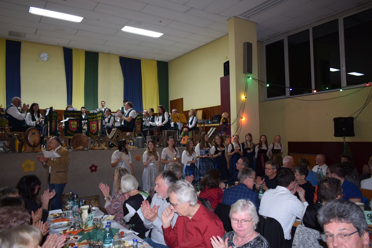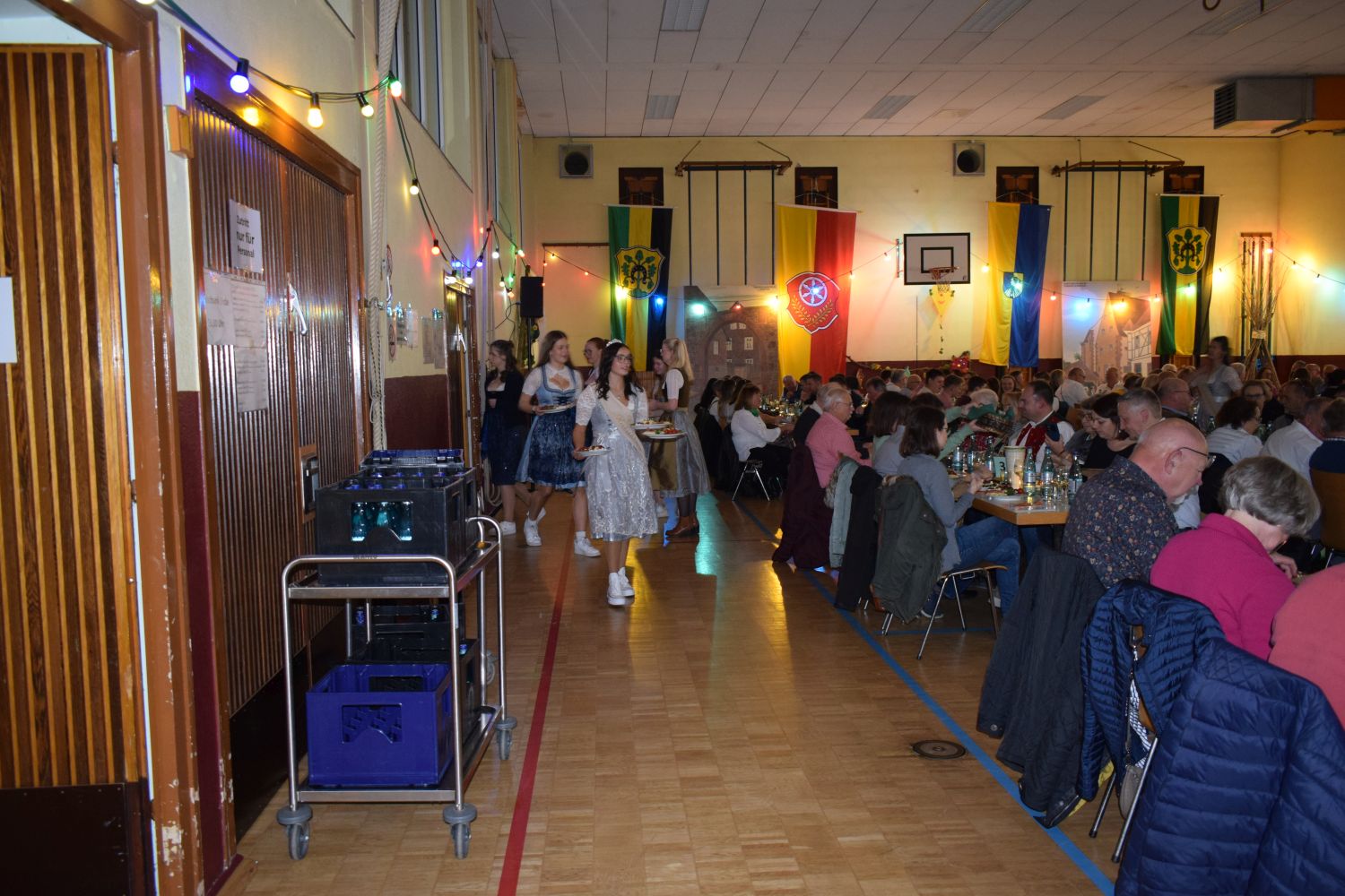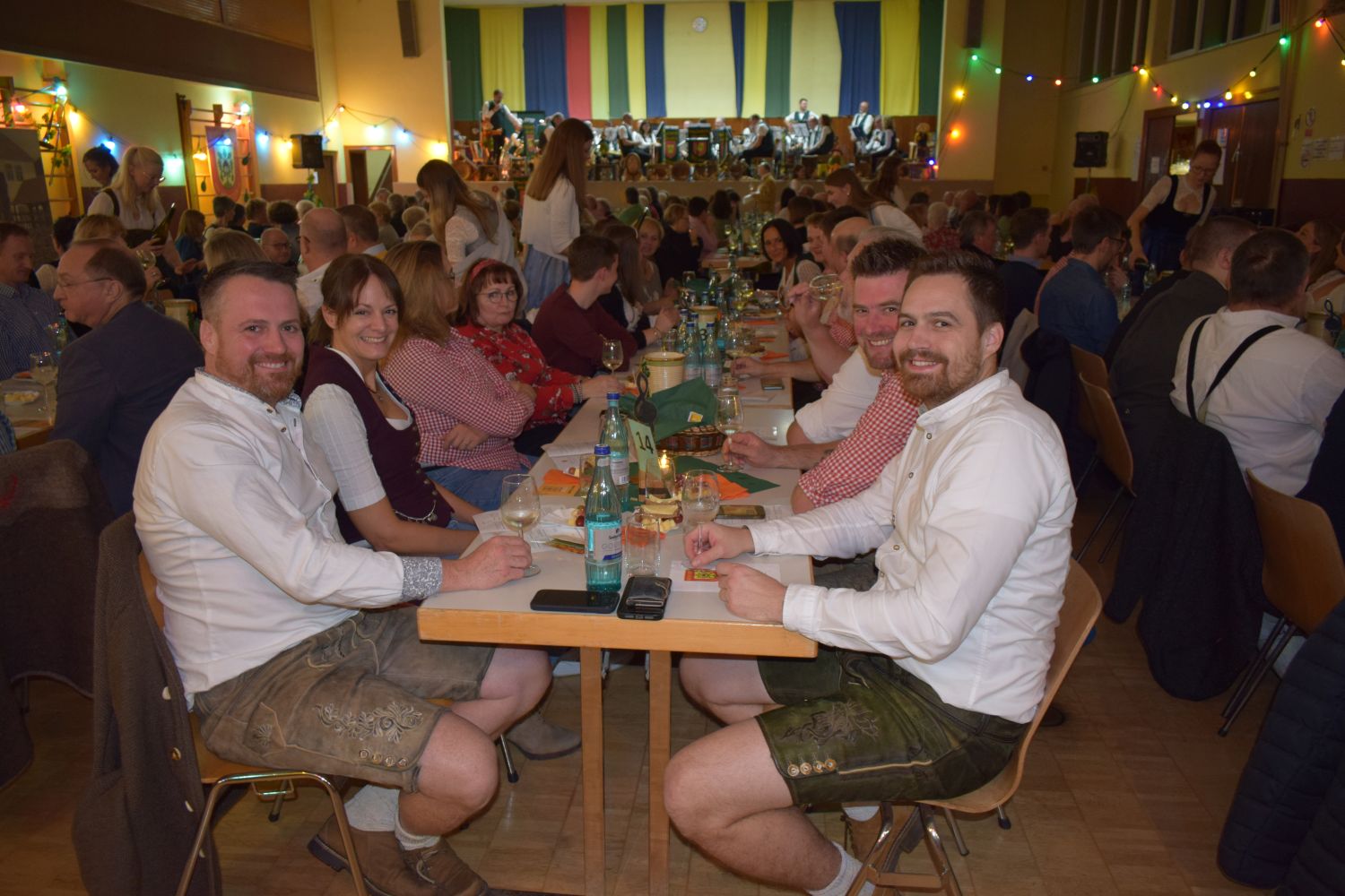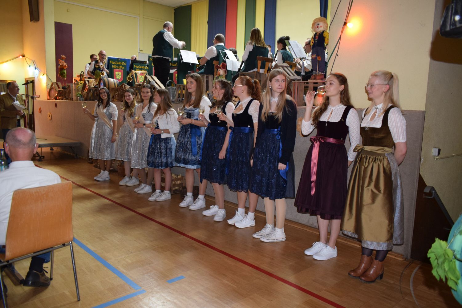 Auch nachdem der letzte Wein verkostet war, ging es in der Schulturnhalle Hörstein in bester Stimmung weiter. Erst weit nach 23:00 Uhr durfte die tapfere Kapelle von der Bühne – nachdem Teile des Publikums zum abschließenden „Hörsteiner Marsch“ erstmals eine Polonaise gestartet hatten.