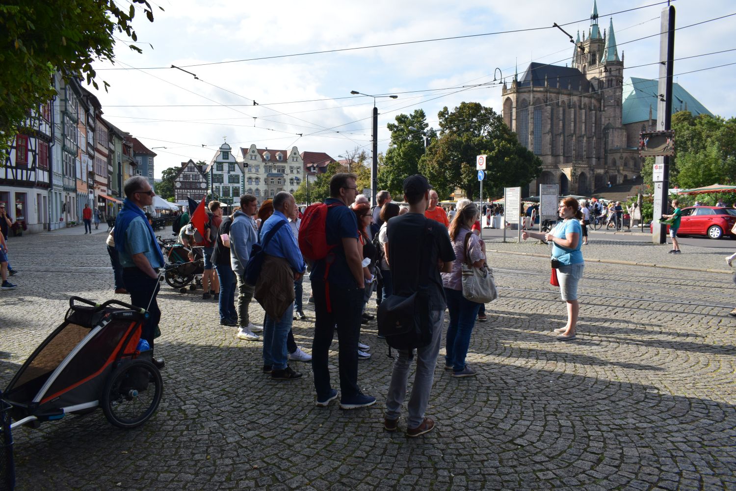 Der Samstag begrüßte die Ausflügler mit Sonnenschein und einer wunderbaren Stadtführung: Carmen Drapal, Tochter unseres Trompeters Bernd, lebt seit einigen Jahren in Erfurt und ist gleichzeitig zertifizierte Stadtführerin: Somit erhielten wir einen sehr kurzweiligen und lebendigen Eindruck von der Stadt und ihrer Geschichte und besichtigten nicht nur die „Klassiker“ wie die Krämerbrücke und den Domplatz, sondern entdeckten auch viele stille und beschauliche Ecken.