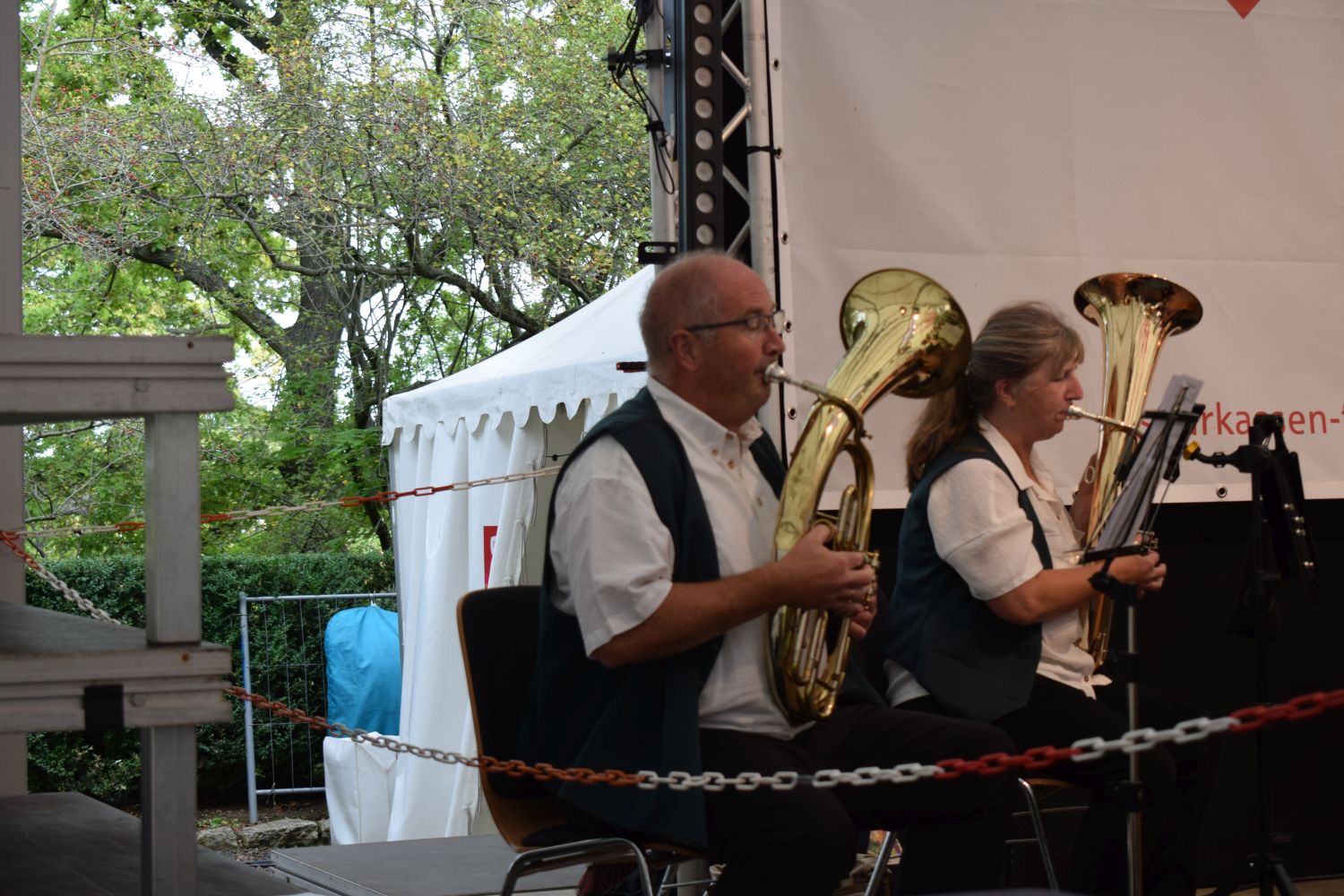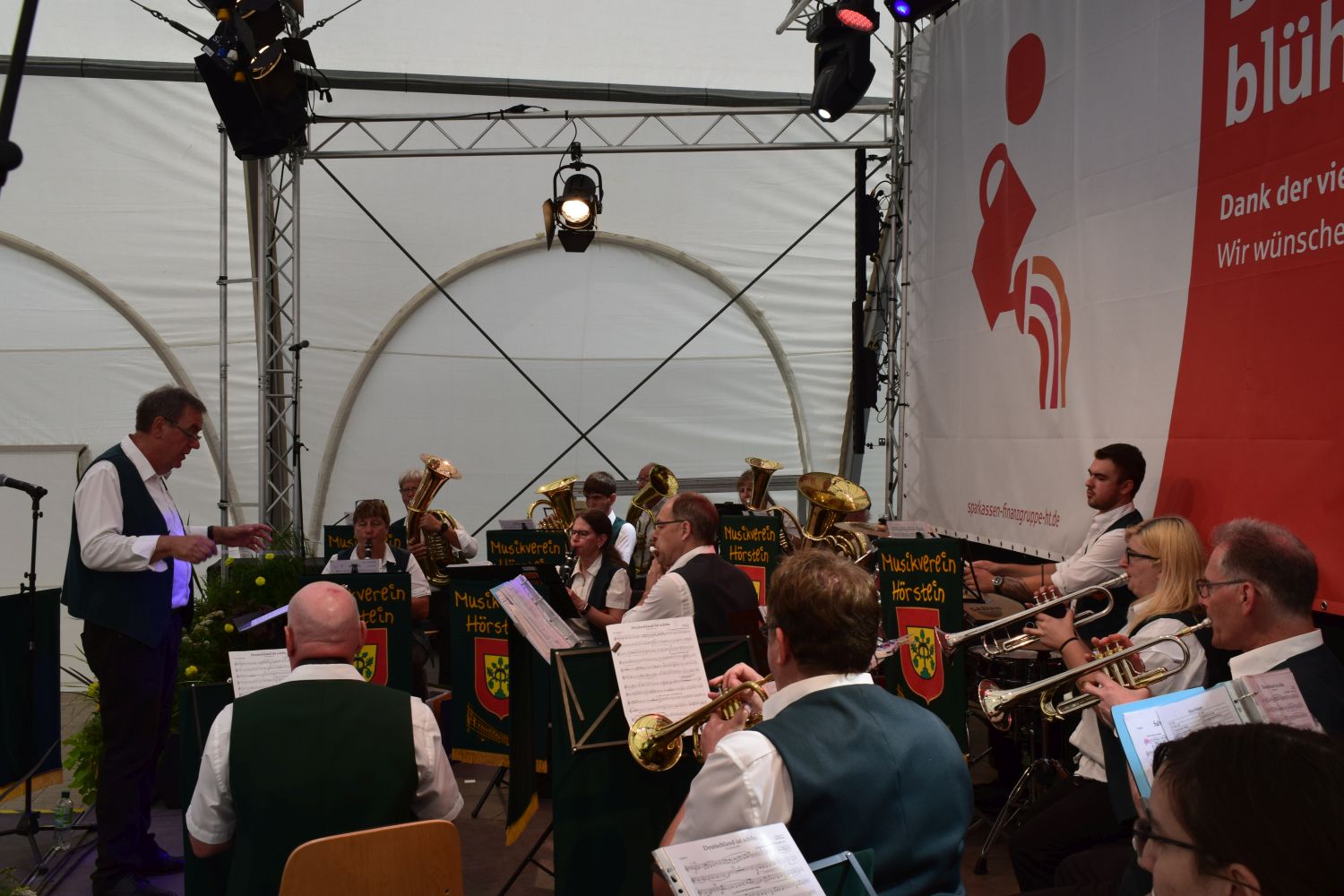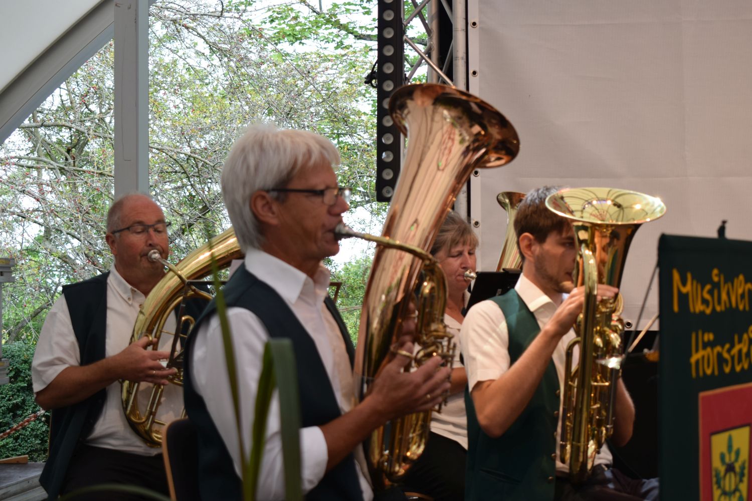 Von böhmischer Blasmusik mit „Heimatbezug“ wie „Wenn der Wein blüht“ und der „Weinkeller Polka“ schlug man den Bogen zu Klassikern wie „Über sieben Brücken musst du gehen“ und der zeitlosen Hymne „One moment in time“. Die immer zahlreicher werdenden Zuhörer spendeten warmen Applaus und forderten nach dem obligatorischen „Hörsteiner Marsch“ noch eine Zugabe. Diese wurde mit dem „Böhmischen Traum“ natürlich gewährt, ehe es dann nach einer kleinen Stärkung mit dem Bus auf die entspannte Heimreise ging.