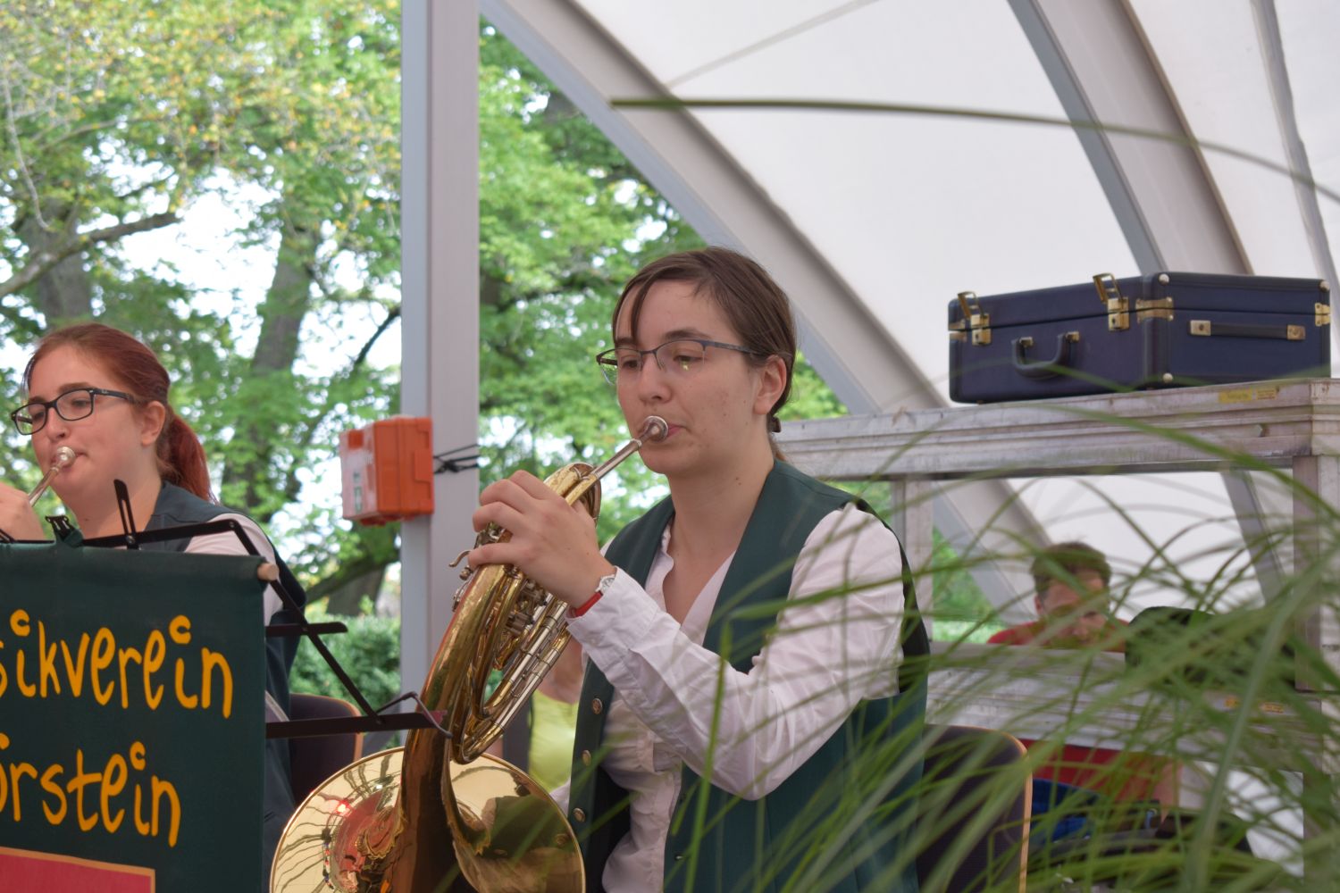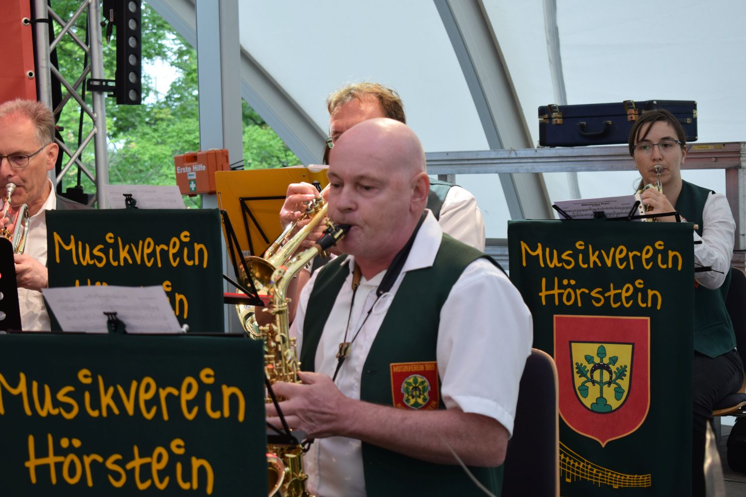 Fröhliche Hörsteiner Musiker bei der Konzertvorbereitung